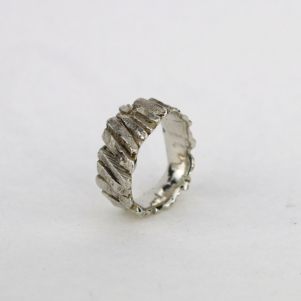 This rock texture ring is inspired by incredible giant rock formations seen in Iceland, dry stone wall stacks and also the most magnificent, magical natural rock palace Fingal’s Cave.
