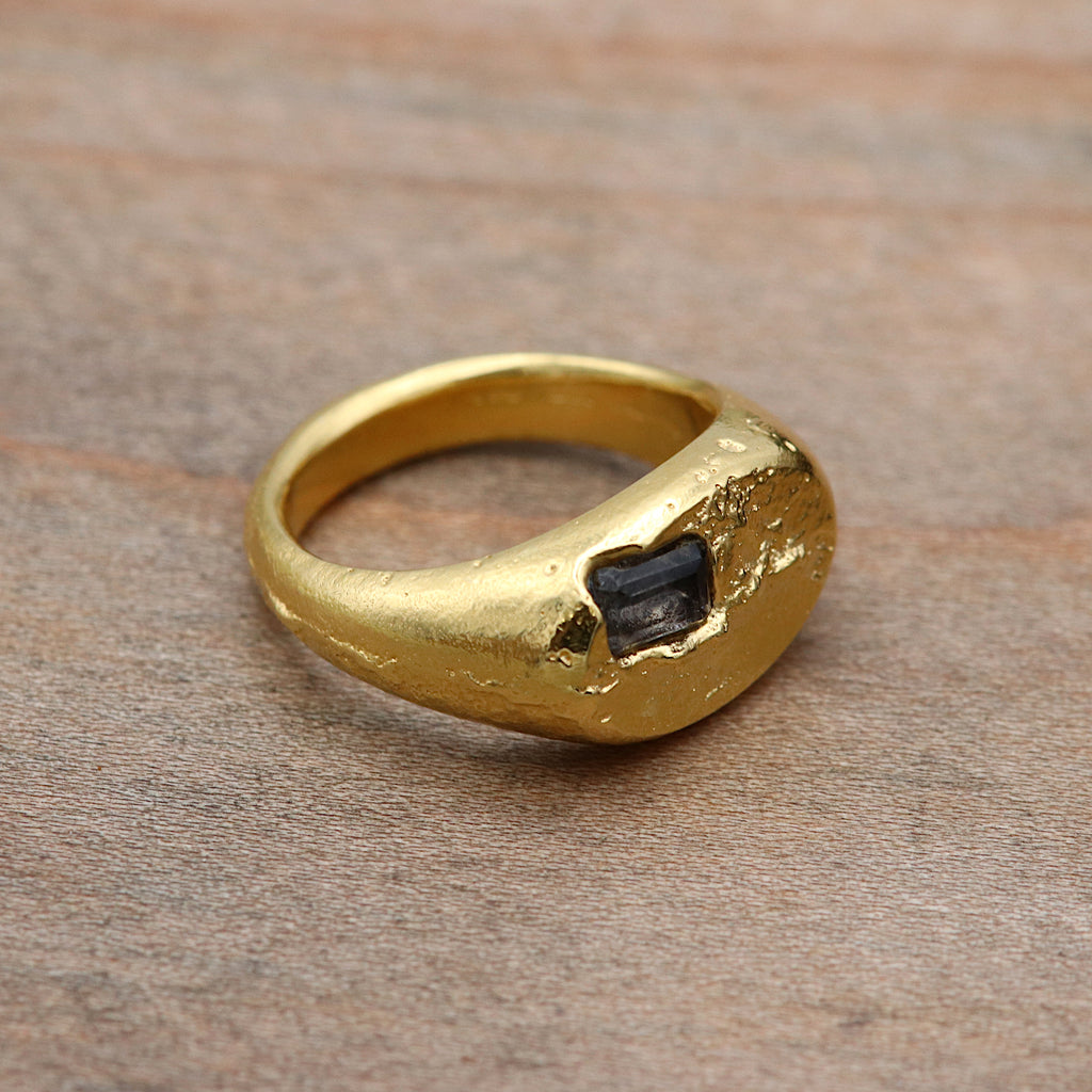 Plethora Wide Gold Plated Signet Ring With Topaz