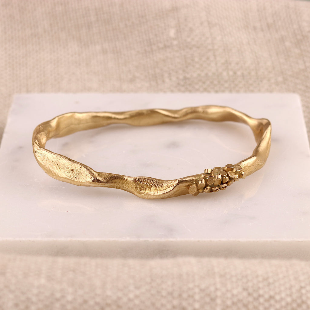 A sumptuous sculptural bronze bangle hand moulded and detailed with a little “Caddis” texture. The oval shape fits comfortably over the hand.
